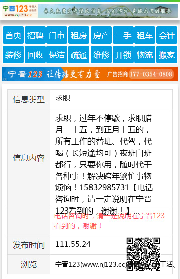 求职,过年不停歇,求职腊月二十五,到正月十五的,所有工作的替班、代驾,代喝(长短途均可)夜班白班都行,只要你用,随时代干各种事!解决跨年繁忙事物烦恼!15832985731 【电话咨询时,请一定说明在宁晋123看到的,谢谢!】 |