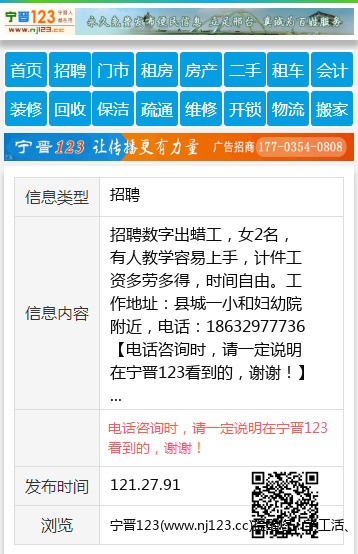| 防骗提醒: | 宁晋123(www.nj123.cc)提醒您:手工活、网络兼职、刷单,都是骗子!凡以各种名义收取费用的都是骗子!找工作是往兜里挣钱,让你往外掏钱的都是骗子!异地招聘请提高警惕,谨防诈骗! |