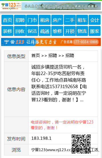 免责声明:本栏目信息由网友自行发布,宁晋123不承担任何责任!提高警惕,谨防诈骗!做推广、做信息置顶!请加宁晋123客服微信:ningjin009