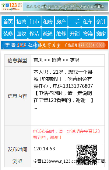 免责声明:本栏目信息由网友自行发布,宁晋123不承担任何责任!提高警惕,谨防诈骗!做推广、做信息置顶!请加宁晋123客服微信:ningjin009