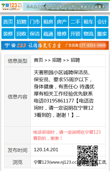 天著熙园小区诚聘保洁员、保安员、要求55周岁以下,身体健康,有责任心 待遇优厚有相关工作经验优先联系电话03195861177