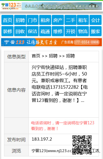 兴宁街快递驿站,招聘兼职店员工作时间5~6小时,50元。兼职或寒假工。有意者电联电话13731572282