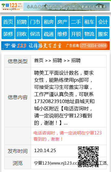 聘美工平面设计数名,要求女性,能熟练使用ps即可,可接受实习生可盖实习章,工作严谨认真负责,可联系17320823910地址县城天和城小区附近