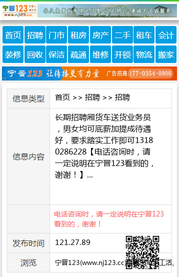 长期招聘厢货车送货业务员,男女均可底薪加提成待遇好,要求踏实工作即可13180286228 【电话咨询时,请一定说明在宁晋123看到的,谢谢!】 |