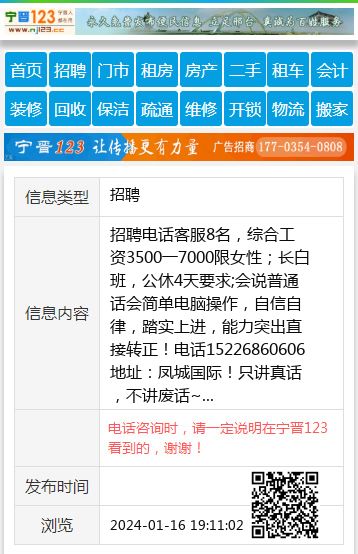 招聘电话客服8名,综合工资3500一7000限女性;长白班,公休4天要求;会说普通话会简单电脑操作,自信自律,踏实上进,能力突出直接转正!电话15226860606地址:凤城国际!只讲真话,不讲废话~ 【电话咨询时,请一定说明在宁晋123看到的,谢谢!】 |