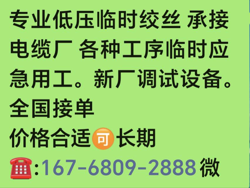 电缆厂有需要低压绞丝的联系长期或临时可外出【电话咨询时,请一定说明在宁晋123看到的,谢谢!】 |