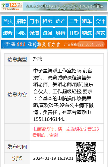 | 防骗提醒: | 宁晋123(www.nj123.cc)提醒您:手工活、网络兼职、刷单,都是骗子!凡以各种名义收取费用的都是骗子!找工作是往兜里挣钱,让你往外掏钱的都是骗子!异地招聘请提高警惕,谨防诈骗! |