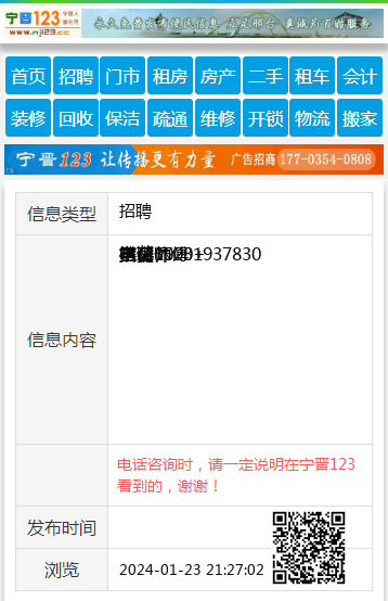 免责声明:本栏目信息由网友自行发布,宁晋123不承担任何责任!提高警惕,谨防诈骗!做推广、做信息置顶!请加宁晋123客服微信:ningjin009