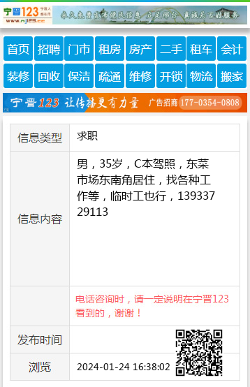 男,35岁,C本驾照,东菜市场东南角居住,找各种工作等,临时工也行,13933729113