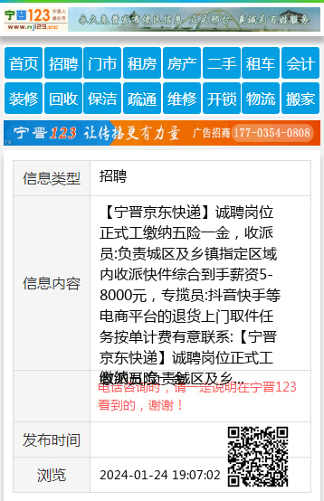 【宁晋京东快递】诚聘岗位正式工缴纳五险一金,收派员:负责城区及乡镇指定区域内收派快件综合到手薪资5-8000元,专揽员:抖音快手等电商平台的退货上门取件任务按单计费有意联系:【宁晋京东快递】诚聘岗位正式工缴纳五险一金