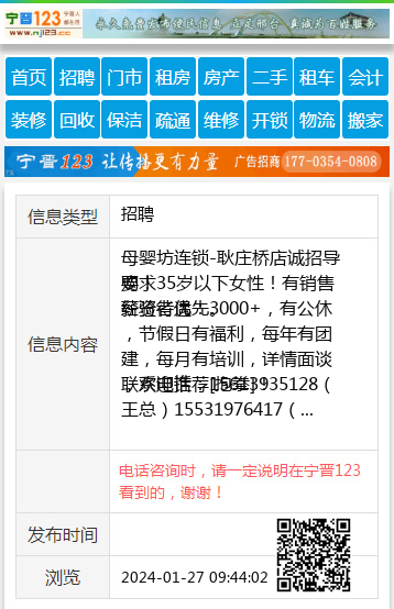 | 防骗提醒: | 宁晋123(www.nj123.cc)提醒您:手工活、网络兼职、刷单,都是骗子!凡以各种名义收取费用的都是骗子!找工作是往兜里挣钱,让你往外掏钱的都是骗子!异地招聘请提高警惕,谨防诈骗! |