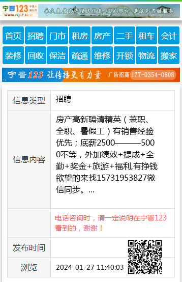 房产高新聘请精英(兼职、全职、暑假工)有销售经验优先;底薪2500———5000不等,外加绩效+提成+全勤+奖金+旅游+福利,有挣钱欲望的来找15731953827微信同步。 【电话咨询时,请一定说明在宁晋123看到的,谢谢!】 |