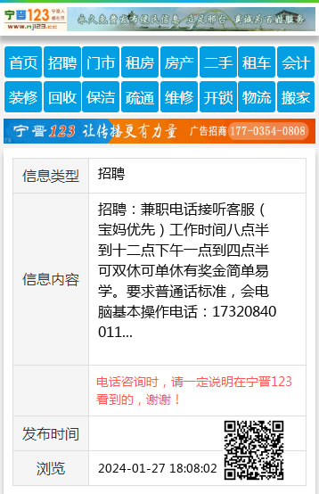 招聘:兼职电话接听客服(宝妈优先)工作时间八点半到十二点下午一点到四点半可双休可单休有奖金简单易学。要求普通话标准,会电脑基本操作电话:17320840011 【电话咨询时,请一定说明在宁晋123看到的,谢谢!】 |