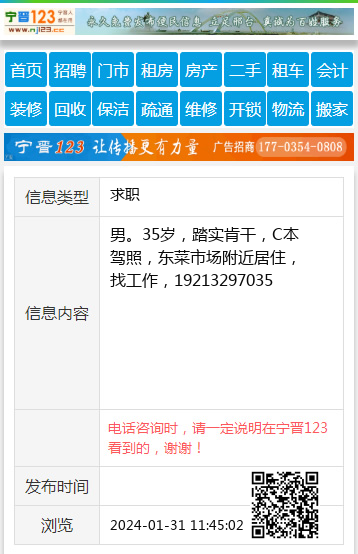 免责声明:本栏目信息由网友自行发布,宁晋123不承担任何责任!提高警惕,谨防诈骗!做推广、做信息置顶!请加宁晋123客服微信:ningjin009