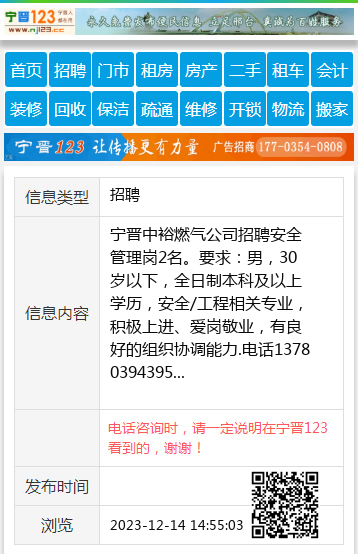 宁晋中裕燃气公司招聘安全管理岗2名。要求:男,30岁以下,全日制本科及以上学历,安全/工程相关专业,积极上进、爱岗敬业,有良好的组织协调能力.电话13780394395 【电话咨询时,请一定说明在宁晋123看到的,谢谢!】 |