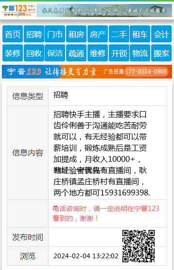 招聘快手主播,主播要求口齿伶俐善于沟通能吃苦耐劳就可以,有无经验都可以带薪培训,锻炼成熟后是工资加提成,月收入10000+,有经验者优先!