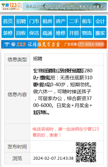 宁晋招聘电话外呼坐席。