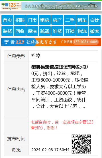 电话咨询时,请一定说明在宁晋123看到的,谢谢! |