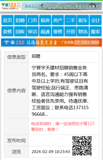 电话咨询时,请一定说明在宁晋123看到的,谢谢!