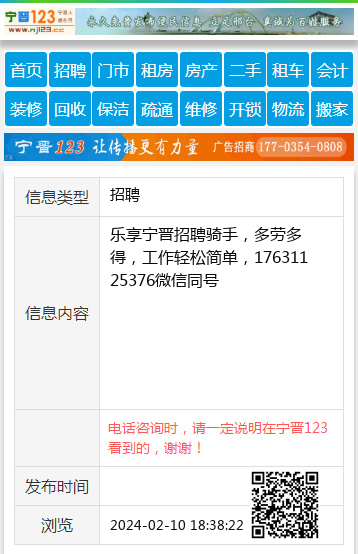 乐享宁晋招聘骑手,多劳多得,工作轻松简单,17631125376微信同号