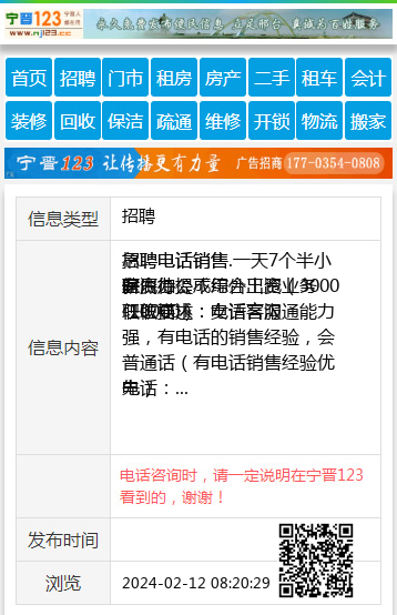 招聘电话销售.一天7个半小时