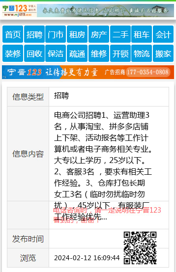 电商公司招聘1、运营助理3名,从事淘宝、拼多多店铺上下架、活动报名等工作计算机或者电子商务相关专业。大专以上学历,25岁以下。2、客服3名 ,要求有相关工作经验。3、仓库打包长期女工3名(临时勿扰临时勿扰),45岁以下,有服装厂工作经验优先。电15833729191宁晋县城