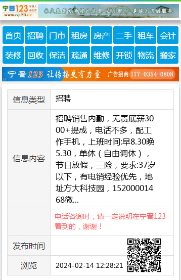 招聘销售内勤,无责底薪3000+提成,电话不多,配工作手机,上班时间:早8.30晚5.30,单休(自由调休),节日放假,三险,要求:37岁以下,有电销经验优先,地址方大科技园,15200001468微 【电话咨询时,请一定说明在宁晋123看到的,谢谢!】 |