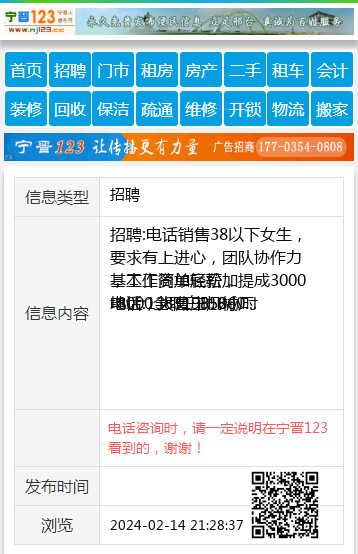 招聘:电话销售38以下女生,要求有上进心,团队协作力,工作简单轻松,