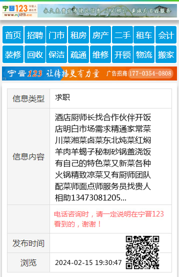 酒店厨师长找合作伙伴开饭店明白市场需求精通家常菜川菜湘菜卤菜东北炖菜红焖羊肉羊蝎子秘制砂锅盖浇饭有自己的特色菜又新菜各种火锅精致凉菜又有厨师团队配菜师面点师服务员找贵人相助13473081205 【电话咨询时,请一定说明在宁晋123看到的,谢谢!】 |