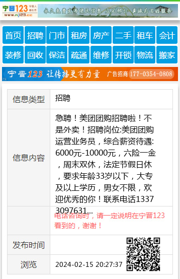 急聘!美团团购招聘啦!不是外卖!招聘岗位:美团团购运营业务员,综合薪资待遇:6000元-10000元,六险一金,周末双休,法定节假日休,要求年龄33岁以下,大专及以上学历,男女不限,欢迎优秀的你!联系电话13373097631 【电话咨询时,请一定说明在宁晋123看到的,谢谢!】 |