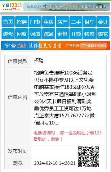 招聘负责接听10086话务员男女不限中专及以上文凭会电脑基本操作1835周岁优秀可放宽有普通话基础8小时制公休4天节假日福利满勤奖励优秀员工工资可达1万地点正泰大厦15717677772微信同号10 【电话咨询时,请一定说明在宁晋123看到的,谢谢!】 |