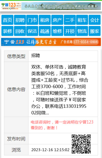 免责声明:本栏目信息由网友自行发布,宁晋123不承担任何责任!提高警惕,谨防诈骗!做推广、做信息置顶!请加宁晋123客服微信:ningjin009