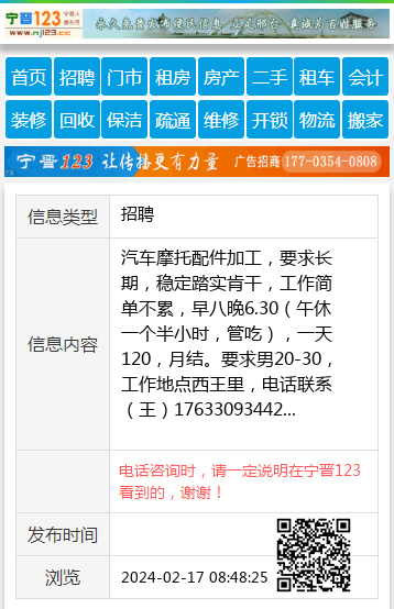电话咨询时,请一定说明在宁晋123看到的,谢谢!
