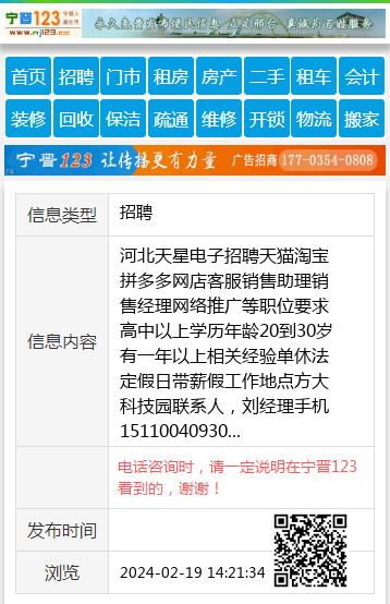 河北天星电子招聘天猫淘宝拼多多网店客服销售助理销售经理网络推广等职位要求高中以上学历年龄20到30岁有一年以上相关经验单休法定假日带薪假工作地点方大科技园联系人,刘经理手机15110040930 【电话咨询时,请一定说明在宁晋123看到的,谢谢!】 |