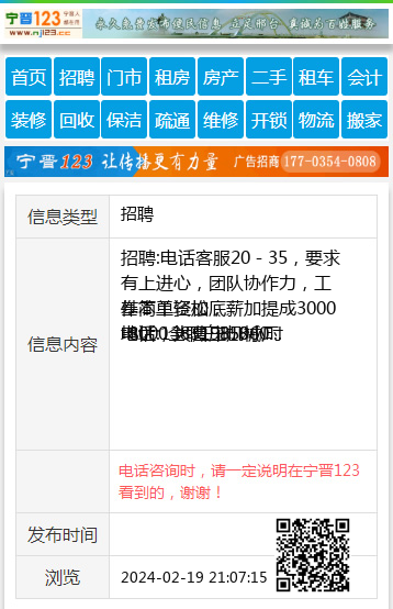招聘:电话客服20-35,要求有上进心,团队协作力,工作简单轻松,