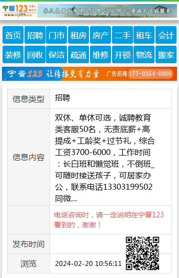 电话咨询时,请一定说明在宁晋123看到的,谢谢!