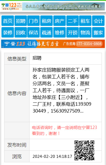 | 防骗提醒: | 宁晋123(www.nj123.cc)提醒您:手工活、网络兼职、刷单,都是骗子!凡以各种名义收取费用的都是骗子!找工作是往兜里挣钱,让你往外掏钱的都是骗子!异地招聘请提高警惕,谨防诈骗! |