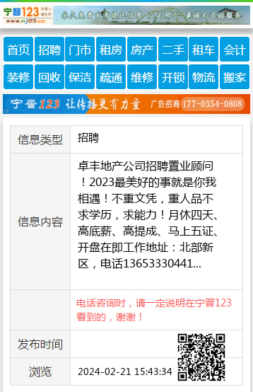 卓丰地产公司招聘置业顾问!2023最美好的事就是你我相遇!不重文凭,重人品不求学历,求能力!月休四天、高底薪、高提成、马上五证、开盘在即工作地址:北部新区,电话13653330441 【电话咨询时,请一定说明在宁晋123看到的,谢谢!】 |