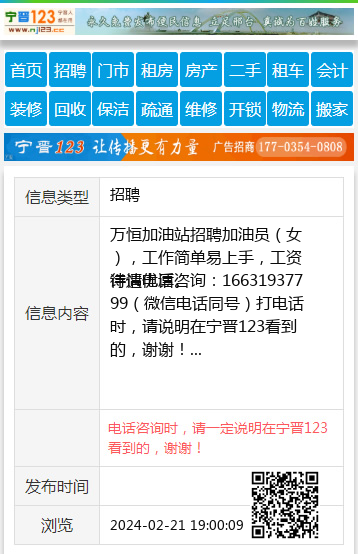 | 防骗提醒: | 宁晋123(www.nj123.cc)提醒您:手工活、网络兼职、刷单,都是骗子!凡以各种名义收取费用的都是骗子!找工作是往兜里挣钱,让你往外掏钱的都是骗子!异地招聘请提高警惕,谨防诈骗! |