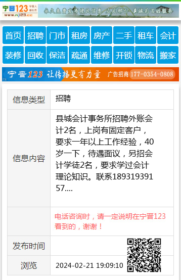 | 防骗提醒: | 宁晋123(www.nj123.cc)提醒您:手工活、网络兼职、刷单,都是骗子!凡以各种名义收取费用的都是骗子!找工作是往兜里挣钱,让你往外掏钱的都是骗子!异地招聘请提高警惕,谨防诈骗! |