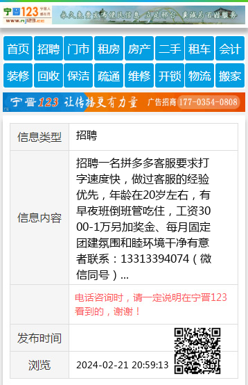 招聘一名拼多多客服要求打字速度快,做过客服的经验优先,年龄在20岁左右,有早夜班倒班管吃住,工资3000-1万另加奖金、每月固定团建氛围和睦环境干净有意者联系:13313394074(微信同号) 【电话咨询时,请一定说明在宁晋123看到的,谢谢!】 |