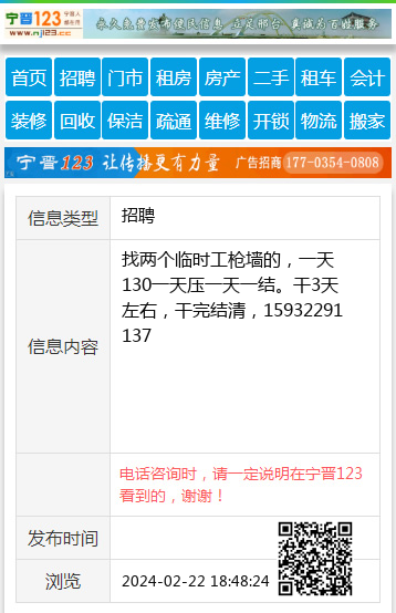 免责声明:本栏目信息由网友自行发布,宁晋123不承担任何责任!提高警惕,谨防诈骗!做推广、做信息置顶!请加宁晋123客服微信:ningjin009