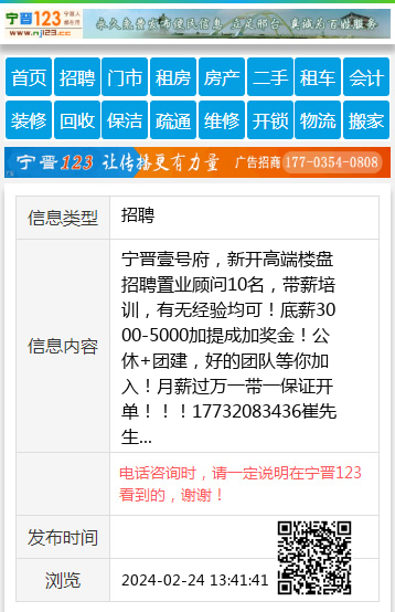 宁晋壹号府,新开高端楼盘招聘置业顾问10名,带薪培训,有无经验均可!底薪3000-5000加提成加奖金!公休+团建,好的团队等你加入!月薪过万一带一保证开单!!!17732083436崔先生