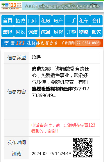 | 防骗提醒: | 宁晋123(www.nj123.cc)提醒您:手工活、网络兼职、刷单,都是骗子!凡以各种名义收取费用的都是骗子!找工作是往兜里挣钱,让你往外掏钱的都是骗子!异地招聘请提高警惕,谨防诈骗! |