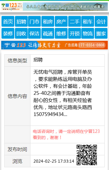 | 防骗提醒: | 宁晋123(www.nj123.cc)提醒您:手工活、网络兼职、刷单,都是骗子!凡以各种名义收取费用的都是骗子!找工作是往兜里挣钱,让你往外掏钱的都是骗子!异地招聘请提高警惕,谨防诈骗! |