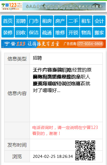 | 防骗提醒: | 宁晋123(www.nj123.cc)提醒您:手工活、网络兼职、刷单,都是骗子!凡以各种名义收取费用的都是骗子!找工作是往兜里挣钱,让你往外掏钱的都是骗子!异地招聘请提高警惕,谨防诈骗! |