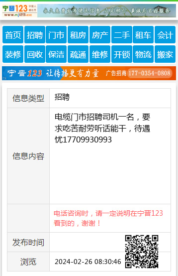 电缆门市招聘司机一名,要求吃苦耐劳听话能干,待遇忧17709930993