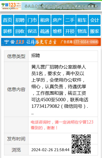 | 防骗提醒: | 宁晋123(www.nj123.cc)提醒您:手工活、网络兼职、刷单,都是骗子!凡以各种名义收取费用的都是骗子!找工作是往兜里挣钱,让你往外掏钱的都是骗子!异地招聘请提高警惕,谨防诈骗! |