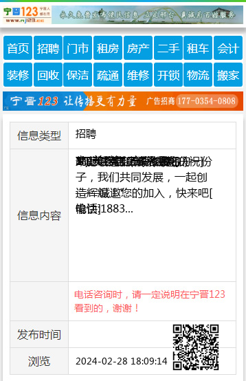 | 防骗提醒: | 宁晋123(www.nj123.cc)提醒您:手工活、网络兼职、刷单,都是骗子!凡以各种名义收取费用的都是骗子!找工作是往兜里挣钱,让你往外掏钱的都是骗子!异地招聘请提高警惕,谨防诈骗! |