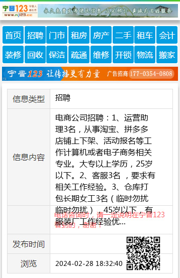 电商公司招聘:1、运营助理3名,从事淘宝、拼多多店铺上下架、活动报名等工作计算机或者电子商务相关专业。大专以上学历,25岁以下。2、客服3名 ,要求有相关工作经验。3、仓库打包长期女工3名(临时勿扰临时勿扰),45岁以下,有服装厂工作经验优先。地址:宁晋县城,电话:15833729191 【电话咨询时,请一定说明在宁晋123看到的,谢谢!】 |